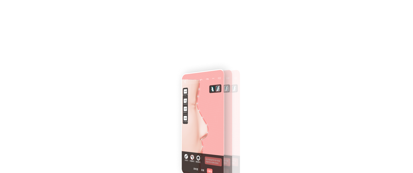 이 프로젝트는 사용자가 모바일 환경에서도 정밀하고 직관적인 가상 성형 경험을 할 수 있도록, 사용자 조작을 정밀하게 반영하는 UI 설계에 중점을 두었습니다. 특히, 사용자가 스마트폰으로 간편하게 자신의 얼굴 부위를 스캔하고, 원하는 만큼 성형을 체험할 수 있는 경험을 중요하게 다루었습니다. 다양한 조작 모드와 제스처 컨트롤을 검토하여 원터치로 미리 설정된 보정값을 적용하거나 제스처를 통한 확대, 축소, 이동, 회전, 드로잉 기능을 통해 섬세한 가상성형을 경험할 수 있도록 설계하였습니다.